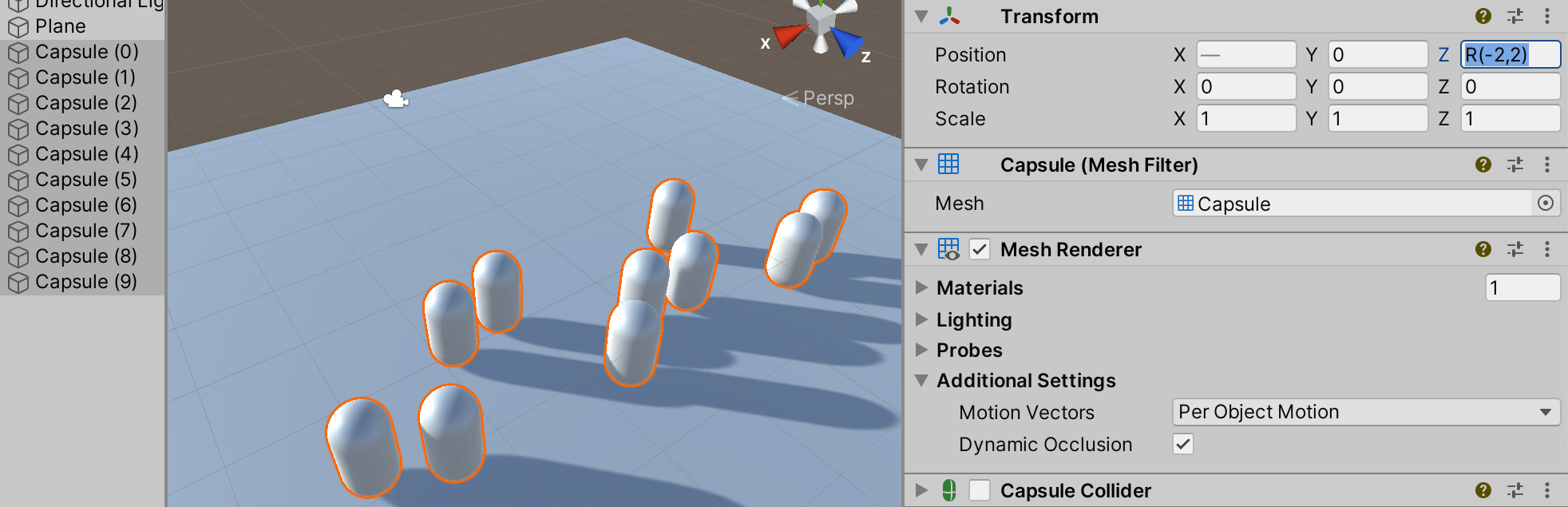 R(-2,2) into Z coordinate sets the Z coordinate of the selected capsules to a random value between –2 and 2.