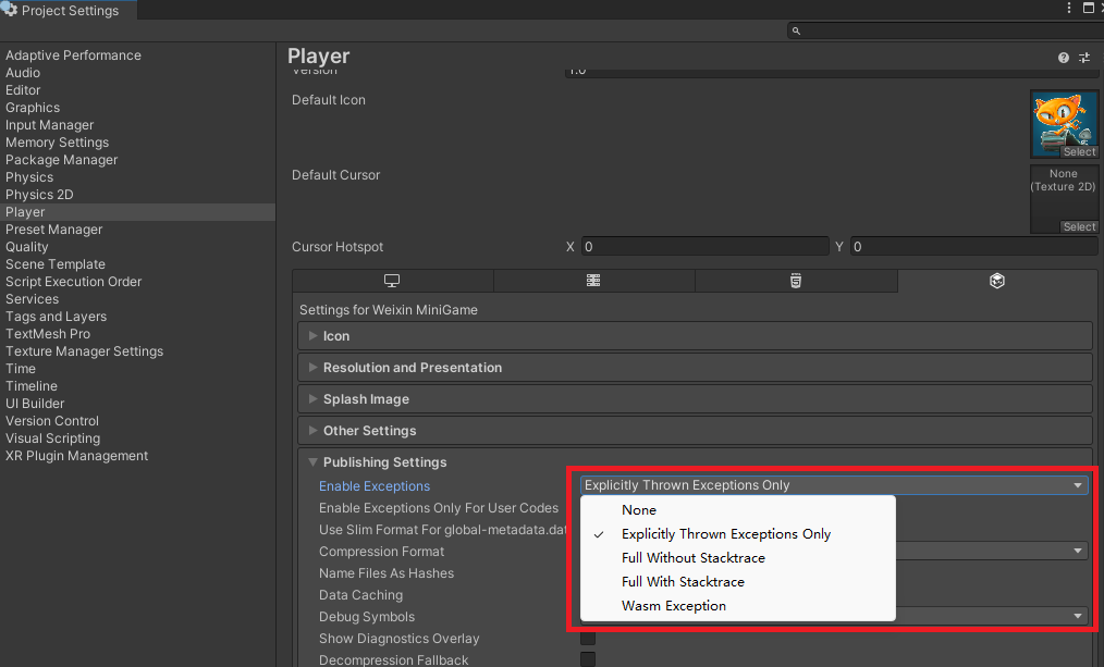 PlayerSettings里 Enable Exceptions 中增加 Wasm Exception 选项,支持 Wasm 原生异常处理(需要关注浏览器的支持情况);