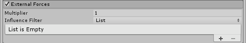 | Influence Filter | 选择是否基于 层遮罩 (Layer Mask) 或通过显式 列表 (List) 包含力场。 | |