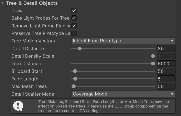 如果希望树实例采用其原型预制件的层值而非地形游戏对象的层值,请选中此复选框。