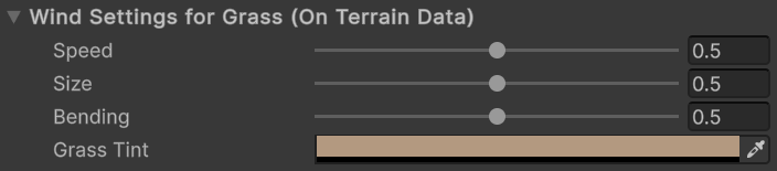 应用于草对象的整体颜色色调。最后出现的颜色是 Grass Tint 乘以每个草对象的 Healthy Color 和 Dry Color 设置。