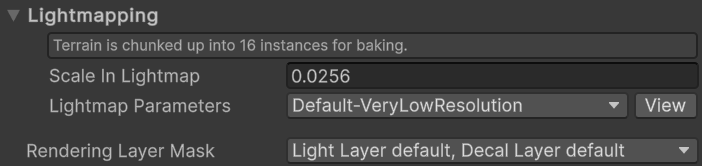 如果选中此复选框,Unity 将消除可见的过冲(通常在受强光照射影响的游戏对象上表现为振铃)。此设置可降低对比度,并依赖于“Bake Light Probes for Trees”设置。有关更多信息,请参阅光照探针组:振铃。