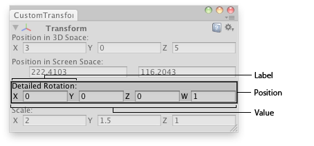 class CustomTransformInspector : EditorWindow { bool showing = true; Vector4 rotationComp;