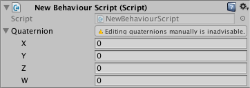 Displaying a message when a Quaternion property is expanded.