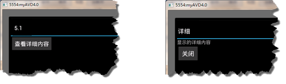 在创建Android项目,实现创建两个Activity,在第一个Activity中,单击“查看详细内容”按钮,进入到第二个Activity中,在该Activity中,单击“关闭”按钮,关闭当前的Activity,返回到第一个Activity中。