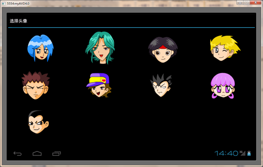 创建Android项目,实现带选择头像的用户注册页面,打开新的Activity选择头像,并将选择的头像返回到原Activity中。
